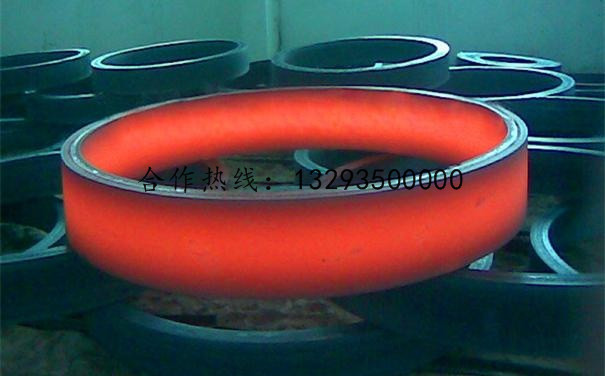熱處理裝夾環形鍛件的熱處理,是在井式熱處理爐或 臺車式熱處理爐中進行加熱, 工件之間要用墊鐵支墊,墊鐵之間間距不能太大,每層墊鐵都應放置在同一直線上。墊鐵面積需要大一些,放置底層墊鐵面枳太小,在工件的加熱狀態下,承受上層過重的工件重量,因為墊鐵單位面積的壓強過大,而被壓人底層工件的金屬中,形成大的痕,使工件沒有加工余量而報廢。環形鍛件熱處理裝夾的原則是:保證工件加熱或冷卻均勻, 防止工件變形,裝卸方便。